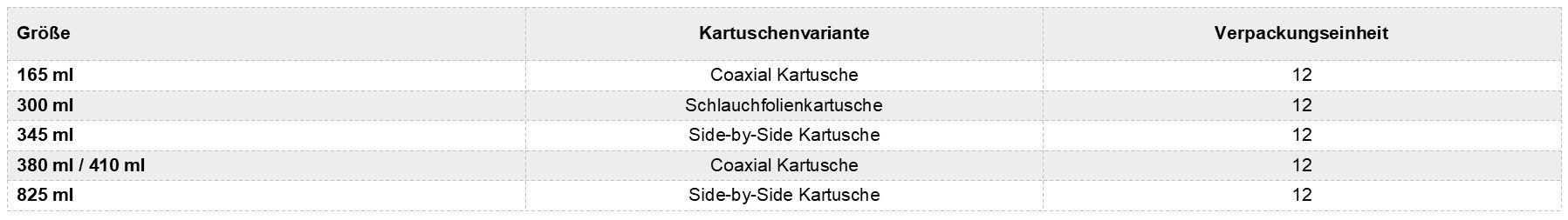 Umgebungstemperaturen nach vollständiger Aushärtung: -40°C bis +80°C